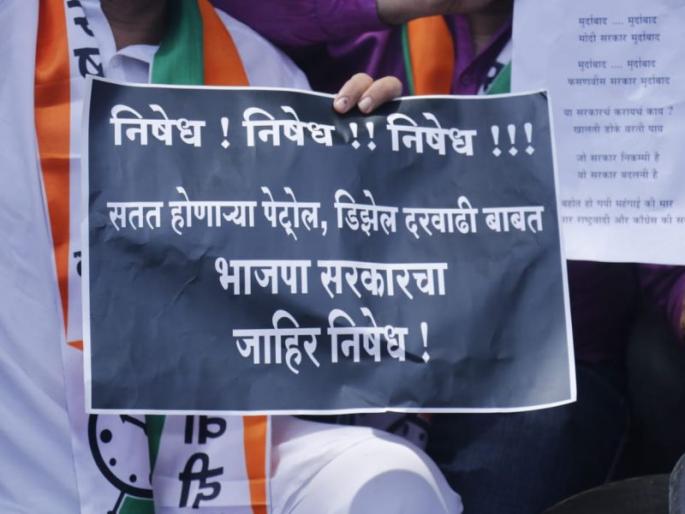 1 / 5कर्नाटकच्या निवडणुका संपल्यानंतर पेट्रोलच्या दरात मोठ्या प्रमाणात वाढ करण्यात आलेली आहे. 2 / 5मंगळवारी सुमारे 85 रुपये पैसे पेट्रोलचा तर 73 रुपये डिझेलचा दर झाला आहे. 3 / 5याचा निषेध करण्यासाठी राष्ट्रवादी काँग्रेसने जिल्हाध्यक्ष आनंद परांजपे यांच्या नेतृत्वाखाली ठाणे जिल्हाधिकारी कार्यालयासमोर अनोखे ‘तिरडी आंदोलन’ केले. 4 / 5तिरडीवर दुचाकीला झोपवून चक्क भाजपा सरकारचे मडके फोडले. 5 / 5कर्नाटकमधील निवडणुकीनंतर सुरू असलेली इंधन दरवाढ मंगळवारीही कायम आहे.