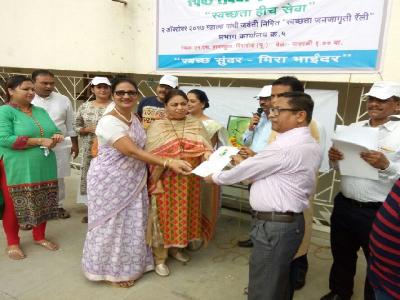 मीरा-भार्इंदर महापालिकेमार्फत गांधी जयंतीच्या निमित्ताने सोमवारी शहरात स्वच्छता रॅलीचे आयोजन करण्यात आले होते.