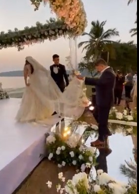 गोव्यातील समुद्रकिनारी नताशा आणि एलेन यांचा ख्रिश्चन पद्धतीने परंपरा जपत लग्नसोहळा पार पडला. त्यासाठी शिवसेना नेत्यांनी जयपूरहून गोवा गाठत, या सोहळ्याला उपस्थिती लावली.