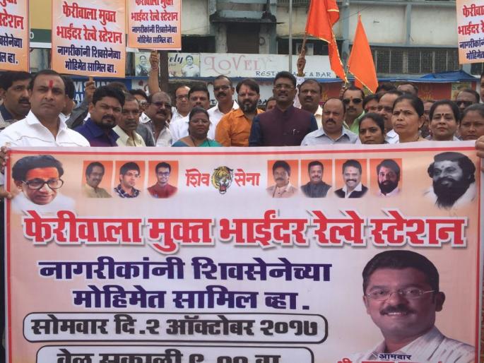 मीरा रोड-भाईंदर रेल्वे स्थानकातील फेरीवाल्यांविरोधात शिवसेनेचे आंदोलन