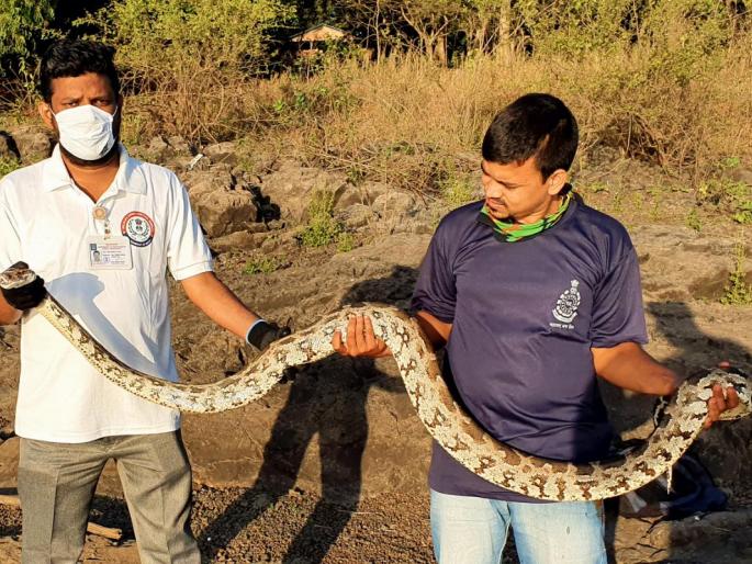 1 / 7वाढत्या उष्णतेमुळे सरपटणारे वन्यजीव मानवी वस्तीत दिसून येत आहेत. तसेच लोकमान्य नगर ठाणे येथे एका चाळीत अजगर प्रजातीचा बिनविषारी साप दिसून आले. 2 / 7त्या भागातील रहिवाशांमध्ये हे भीतीचे वातावरण पसरले. स्थानिक रहिवाशी सुनील हरपाल यांनीसदर घटनेची माहिती प्लॅंट अन्ड एनिमल वेल्फेअर सोसायटी-मुंबई (पॉज-मुंबई) आणि अम्मा केअर फाऊंडेशन (एसीएफ) च्या मदत क्रमांकावर माहिती दिली. 3 / 7सदर माहिती मिळाल्यानुसार पॉज-मुंबई एसीएफ चे स्वयंसेवक हसमुख मारुती वळंजू घटनास्थळी दाखल झाले, साडेसहा फुटाच्या अजगराला पकडण्यात यश आले. 4 / 7वागळे इस्टेट रोड ॲपलॅब कंपनी मध्ये कॅन्टीन मधून डुरक्या घोणस प्रजातीचा बिनविषारी साप पकडण्यात आला. अशी माहिती पॉज-मुंबई एसीएफचे निशा कुंजू यांनी दिली. 5 / 7मानद वन्यजीव रक्षक सुनिष सुब्रमण्यन यांनी सांगितले की दोन्ही सापांची वैद्यकीय तपासणी डॉ. राहुल मेश्राम यांनी केली आणि आणि त्या दोन्ही सापांना निसर्गाच्या सानिध्यात सोडण्यात आले. 6 / 7आपल्या विभागांमध्ये कुठलेही वन्यजीव दिसल्यास पॉज-मुंबई एसीएफ हेल्पलाईन क्रमांक ९८३३४८०३८८ किंवा वन विभाग नियंत्रण कक्षाशी १९२६ ह्या क्रमांकावर संपर्क साधावा.7 / 7आपल्या विभागांमध्ये कुठलेही वन्यजीव दिसल्यास पॉज-मुंबई एसीएफ हेल्पलाईन क्रमांक ९८३३४८०३८८ किंवा वन विभाग नियंत्रण कक्षाशी १९२६ ह्या क्रमांकावर संपर्क साधावा.