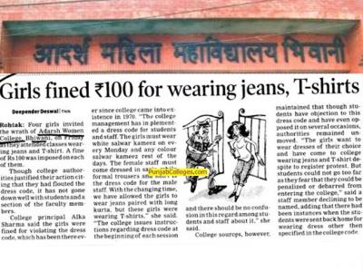 हे हरीयाणाचे आदर्श मुलींचे महाविद्यालय असून लहान ड्रेस घातल्याने विद्यार्थिनी पूर्णपणे झाकल्या जात नाही त्यामुळे त्यांना छेडखाणीला सामोरे जावे लागते.” असं तिथल्या शिक्षकांचे मत आहे. त्यामुळे ह्या कॉलेजमध्ये पाश्चिमात्य कपडे घालण्यास मनाई आहे. आणि जर कुणी हा नियम मोडला तर त्याला १०० रुपयांचा दंड भरावा लागतो.
