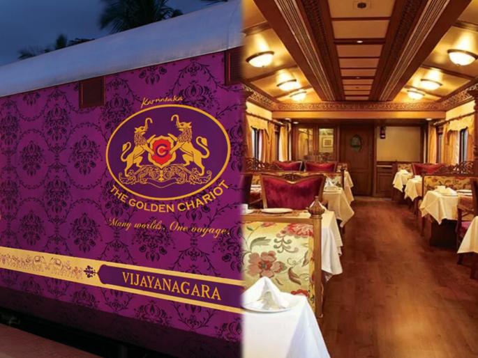 1 / 8भारतीय रेल्वेची लग्जरीअस ट्रेन गोल्डन चॅरिएट पुन्हा एकदा रूळांवर धावणार आहे. दक्षिण भारताची सफर घडवणारी हे ट्रेन १४ मार्चपासून ग्राहकांच्या सेवेसाठी पुन्हा सुरू झाली. द प्राईड ऑफ कर्नाटक नावानं प्रसिद्ध असलेली गोल्डन चॅरिएट ट्रेन १४ मार्चपासून ६ रात्री आणि सात दिवसांसाठी यशवंतपूर बँगलुरू रेल्वे स्टेशनवरून सुरू झाली.2 / 8आयआरसीटीसीनं दिलेल्या माहितीनुसार गोल्डन चॅरिएट बँगलुरूपासून बांदीपूर नॅशनल पार्क, मैसूर, हॅलेबिड, चिकमंगलुरू, हम्पीचा प्रवास करत सात दिवसांनी परतणार आहे. या ट्रेनच्या प्रवासाचा आनंद घेण्यासाठी दोन प्रकारच्या योजना आखण्यात येणार आहेत.3 / 8जर तुम्ही ६ रात्री आणि ७ दिवसांची प्लॅन घेऊ इच्छित नसाल तर तुम्ही ३ रात्रींचे पॅकेजसुद्धा घेऊ शकता. ज्यात तुम्हाला बँगलुरू, म्हैसुर, हम्पी, महाबलीपुरम फिरण्याची संधी मिळू शकते. 4 / 8प्राईड ऑफ कर्नाटक आणि ज्वेल ऑफ साऊथ चे हे दोन पॅकेज आहेत. ज्याचं भाडंसुद्धा वेगवेगळं आहे. द ज्वेल्स ऑफ साऊथ इंडीयाची सफर २१ मार्चला सुरू होणार आहे. तर या ट्रेनचं बुकिंग करण्यासाठी तुम्ही अधिकृत वेबसाईट goldenchariot.org वर जाऊन बुकिंग करू शकता.5 / 8ही ट्रेन कोणत्याही फाईव्ह स्टार हॉटेलला टक्कर देईल अशी आहे.6 / 8 या ट्रेनमध्ये जीम, स्पा, गाद्या, फर्नीचर, आलिशान खोल्या, बाथरूम असून यांची रचना खास डिजायर्नसकडून करण्यात आली आहे. 7 / 8दरम्यान ही शाही ट्रेन २००८मध्ये कर्नाटक राज्य पर्यटन विकास पालिकेकडून सुरू करण्यात आली होती. त्यानंतर या ट्रेनटी सुत्र आयआरसीटीसीकडे सोपावण्यात आली. 8 / 8दरम्यान ही शाही ट्रेन २००८मध्ये कर्नाटक राज्य पर्यटन विकास पालिकेकडून सुरू करण्यात आली होती. त्यानंतर या ट्रेनटी सुत्र आयआरसीटीसीकडे सोपावण्यात आली.