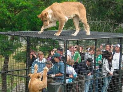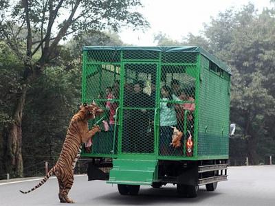 इथे वाघ उघडपणे फिरतात. या प्राणिसंग्रहालयातून पर्यटकांनाच एका पिंजऱ्यातून नेण्यात येतं.