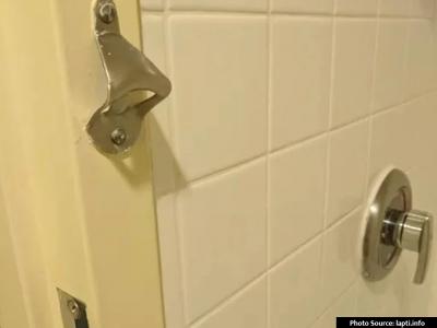 हॉटेलच्या वॉशरुममध्ये बोटल खोलण्याचं ओपनर लावण्यात आलेलं आहे
