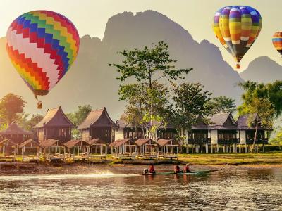 दुसऱ्या दिवशी व्हिएन्तिआनहून बस किंवा खासगी वाहनाने नयनरम्य मार्गाने वांग विएंग कडे प्रस्थान करा. वांग विएंग येथील प्रसिद्ध ब्लू लॅगून आणि थाम चांग गुंफेला भेट द्या. लॅगूनमध्ये मनसोक्त पोहण्याचा आणि आराम करण्याचा आनंद घ्या. संध्याकाळी नदीकिनारी बोट राइडचा आनंद घेत सूर्यास्त पाहा आणि डिनर करा.