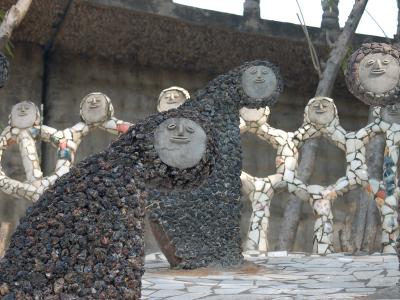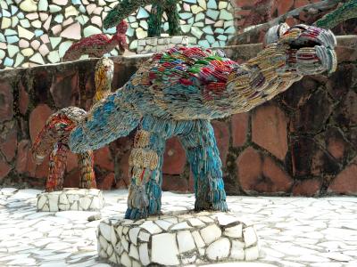 चिनी मातीची खराब भांडी, फुटेलल्या बांगड्या, तारा अशा टाकाऊ वस्तूपासून कलात्मक वस्तू येथे तयार केलेल्या आहेत.