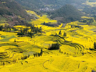 चीनमधल्या कॅनोला फ्लॉवर फील्ड या गावात निसर्गाचं नयनरम्य दृश्य पाहायला मिळतं. गावातील शेती ही एखाद्या चित्रसारखीच भासते.