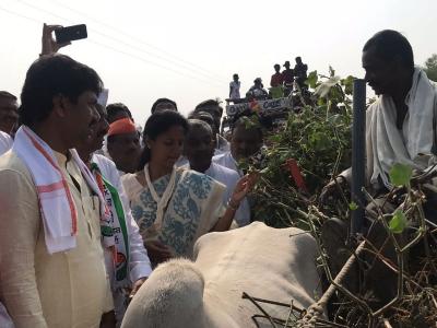 राष्ट्रवादी काँग्रेसची पदयात्रा सातव्या दिवशी वर्ध्यातील पवनार येथे पोहोचली होती. यावेळी शेतकरी श्रीकांत तोटे यांनी NCPचे प्रदेशाध्यक्ष सुनील तटकरे, विरोधी पक्षनेते धनंजय मुंडे व खासदार सुप्रिया सुळे यांना आपल्या कापूस शेतीचे पाहणी करण्याची विनंती केली.