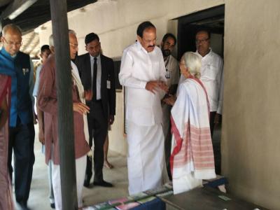 उपराष्ट्रपती व्यंकय्या नायडू यांनी रविवारी महात्मा गांधी यांच्या वर्धास्थित सेवाग्राम आश्रमाला भेट दिली.