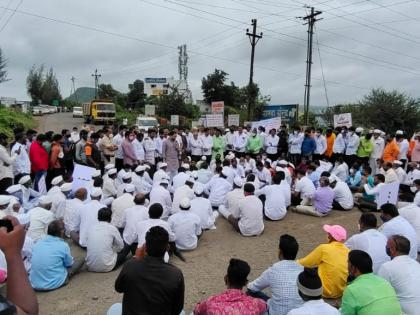 तळेगाव एमआयडीसी रोडवर आंबी फाटा येथे शेतकरी कृती बचाव समितीच्या वतीने दोन तास रास्ता रोको आंदोलन