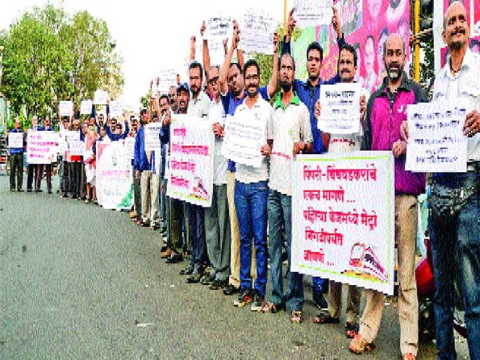 पिंपरी : मेट्रो पहिल्या टप्प्यात निगडीपर्यंत होणे आवश्यक आहे. पुणे मेट्रो पहिल्याच फेजमध्ये निगडीपर्यंत नेण्याच्या मागणीसाठी पिंपरी-चिंचवड सिटीझन फोरमच्या वतीने कनेक्टिंग एनजीओच्या अंतर्गत शुक्रवारी पिंपरी येथील डॉ. बाबासाहेब आंबेडकर चौकात मानवी साखळीचे आयोजन केले होते.पुण्यात व पिंपरी-चिंचवड शहरात मेट्रोचे काम सुरू झाले आहे. त्यातून सार्वजनिक वाहतूकव्यवस्था सुसह्य होणार आहे. पिंपरी-चिंचवड शहराकरिता मेट्रो महत्त्वाची सेवा असणार आहे. परंतु प्रथम फेजमध्ये मेट्रो पिंपरीपर्यंतच येत आहे. निगडी बसस्थानकावरून पुणे शहराकडे जाण्यासाठी बस दीडशे टक्के भरून जातात. तसेच या भागात शैक्षणिक संकुले, शासकीय कार्यालये, कामगार निवासस्थाने, शहरातील पर्यटनस्थळे, वाहतूकनगरी व अन्य महत्त्वाची ठिकाणे आहेत.मेट्रोचा पहिला टप्पा सुरू झाला आहे. हा टप्पा निगडीपर्यंत न्यावा, अशी मागणी आहे. त्यामुळे आज मानवी साखळीचे आयोजन केले होते. त्यात शहरातील विविध संघटनांनी उत्स्फूर्त प्रतिसाद नोंदविला. यामध्ये पोलीस नागरिक मित्र, ज्येष्ठ नागरिक महासंघ पिंपरी-चिंचवड, स्वातंत्र्यवीर सावरकर मंडळाची निसर्गमित्र संघटना, स्टेट बँक आॅफ इंडिया पेंशनर्स असोसिएशन्स पिंपरी-चिंचवड युनिट, सांस्कृतिक संवर्धन व विकास महासंघ, रोटरी क्लब आॅफ वाल्हेकरवाडी इत्यादी संघटनांनी सहभाग नोंदविला.प्रत्येकाने पुणे मेट्रो निगडीपासून सुरू व्हावी यासाठी हातात फलक घेतले होते. केवळ फलकांच्या माध्यमातून जनजागृती करीत कसलीही निदर्शने न करता अथवा एकही घोषणा न देता शांततेच्या मार्गाने ही मानवी साखळी काढली. पुणे मेट्रो पहिल्या फेजमध्ये निगडीपर्यंत पोहोचली, तरच शहराला पूर्णपणे न्याय मिळणार आहे’, अशा संदेशाचे फलक दाखविण्यात आले....तर निगडीपर्यंत मेट्रो शक्यमेट्रोचा हा साडेअकरा हजार कोटींचा प्रकल्प आहे. यामध्ये केवळ आणखी सहा टक्के रक्कम वाढवली, तर पुणे मेट्रो थेट निगडीपर्यंत जाऊ शकते. निगडी परिसरात सुमारे साडेसहा लाख लोक राहतात. तसेच तळवडे, रावेत, चाकण या भागासाठी निगडीतून पोहोचणे सहजशक्य आहे. निगडीपर्यंत मेट्रो आल्यास इथे ट्रान्सपोर्ट हबदेखील करता येईल. त्यामुळे पिंपरी-चिंचवडच्या लौकिकात आणखी भर पडेल. पुणे मेट्रो पहिल्या टप्प्यात निगडीपर्यंत पोहोचण्यासाठी पिंपरी-चिंचवड सिटीझन फोरमच्या वतीने मागील एक वर्षापासून स्थानिक आमदार, खासदार व नगरसेवकांची भेट घेऊन निवेदन देण्यात आले आहे. मात्र, निवेदन स्वीकारताना सर्वांनी केवळ आश्वासनाव्यतिरिक्त काहीही प्रतिसाद दिलेला नाही, अशी खंत पिंपरी-चिंचवड सिटीझन फोरमकडून व्यक्त करण्यात येत आहे.