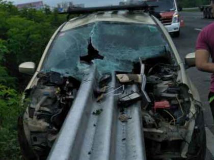 अमोल शिवाजी पाटील (वय 39), श्रीमंत कृष्णा भोंदे (वय 45) आणि प्रकाश गोविंद वाईगडे (वय 45, सर्व रा. सिल्व्हर पार्क, मीरा भाईंदर) अशी गंभीर जखमींची नावे आहेत. सूर्याजी कृष्णा भोंदे (चालक, वय 39, रा. सिल्व्हर पार्क, मीरा भाईंदर) यांना किरकोळ जखम झाली आहे. हे सर्वजण काही कामानिमित्त दाेन दिवसांपूर्वी काेल्हापूरला कारमधून गेले हाेते. साेमवारी रात्री सर्वजण मुंबईकडे जाण्यासाठी निघाले हाेते. पहाटे सहाच्या सुमारास भरधाव कार साेमाटणे फाटा येथे अाली असता चालकाचे कारवरील नियंत्रण सुटले. कार थेट रस्त्याच्या बाजूला असलेल्या संरक्षण पट्टीला जाऊन धडकली. ही धडक इतकी भीषण हाेती की संरक्षक पट्टी कारच्या अारपार गेली. या धडकेमुळे कारच्या पुढच्या बाजूचा चेंदामेंदा झाला हाेता. या अपघातात कारमधील तिघेजण गंभीर जखमी झाले असून एकजण किरकाेळ जखमी झाला अाहे. सध्या जखमींवर खासगी रुग्णालयात उपचार सुरु अाहेत.