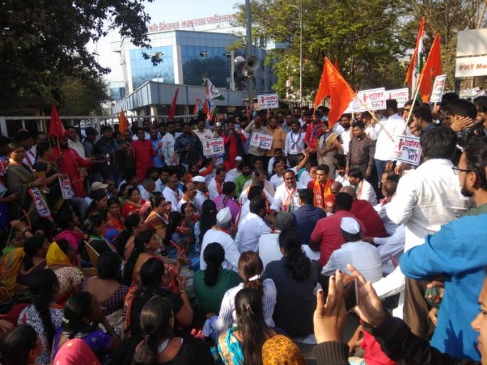 पिंपरी-चिंचवड : शहरातील अवैध बांधकामांचा शास्तीकर माफ करावा, अनियमित बांधकामे नियमितीकरण, रेडझोन, रिंग रोडबाबतच्या प्रश्नांकडे सत्ताधारी भाजपा व प्रशासनाचे लक्ष वेधण्यासाठी, दिलेल्या आश्वासनांची आठवण करुन देण्यासाठी विरोधी पक्ष, विविध सामाजिक संघटनांच्या वतीने आज (सोमवारी) महापालिका प्रवेशद्वारासमोर आंदोलन करण्यात आले. 'गाजर' हातात घेऊन सत्ताधाऱ्यांचा निषेध केला. या आंदोलनात राष्ट्रवादी काँग्रेसचे शहराध्यक्ष संजोग वाघेरे, विरोधी पक्षनेते दत्ता साने, शिवसेना गटनेते राहुल कलाटे, शहरप्रमुख योगेश बाबर, काँग्रेस शहराध्यक्ष सचिन साठे, मनसे शहराध्यक्ष सचिन चिखले, शेकापचे हरीष मोरे, स्वराज इंडिया अभियानाचे मानव कांबळे, सामाजिक कार्यकर्ते मारूती भापकर, राष्ट्रवादी काँग्रेसच्या महिला शहराध्यक्ष वैशाली काळभोर, नगरसेविका वैशाली घोडेकर, माजी नगरसेविका मंदा आल्हाट, छावा संघटनेचे अध्यक्ष धनाजी येळकर, मराठा सेवा संघाचे प्रकाश जाधव, रोमी संधू, राजू सावळे तसेच विविध पक्ष आणि सामाजिक संस्थांचे पदाधिकारी हातात गाजरे घेऊन सहभागी झाले आहेत.