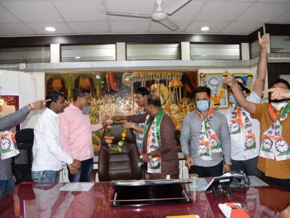 राष्ट्रवादीच्या कार्यकर्त्यांनी खुर्चीला पालेभाज्या व फळांचा हार घालून उपमहापौरांचा निषेध केला.