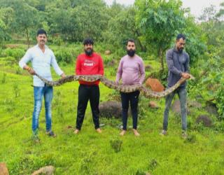 पुणे : खडकवासला जवळील पारगेवाडीत १५ फुटांचा अजगर; सर्पमित्रांच्या प्रसंगावधानाने मोठा अनर्थ टळला