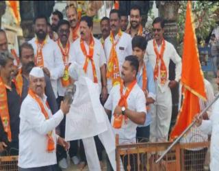 पुण्यात शिवसेनेच्या वतीने एकनाथ शिंदे यांच्या पुतळ्याचे जोडे मारत दहन