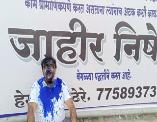 स्वतःच्या अंगावर शाई ओतून चंद्रकांत पाटील यांचा निषेध