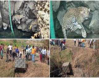 जरेवाडीत विहिरीत पडलेल्या बिबट्याची सुखरूप सुटका करून केले जेरबंद