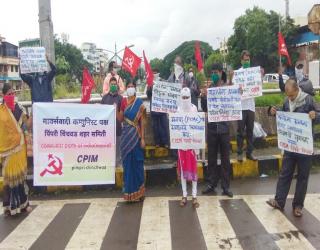 पिंपरी -चिंचवड : भ्रष्ट अधिकाऱ्यांवर कारवाईची मागणी, आरोग्य विभागाचा निषेध : आकुर्डीत माकपतर्फे भर पावसात निदर्शने