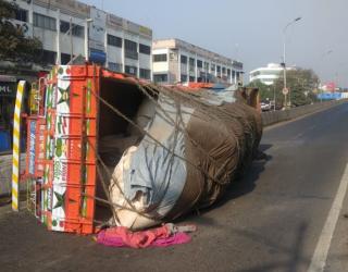 पिंपरी -चिंचवड : उड्डाणपुलाला धडकुन निगडीत ट्रकचे नुकसान