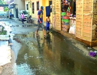 मैलामिश्रित पाणी रस्त्यावर, नागरिक त्रस्त