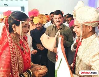 फ्रॅक्चर हात गळ्यात बांधून क्रीडामंत्री भरणेंनी धरला लग्नात अंतरपाट..