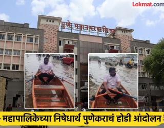 पुणे : वा रे पट्ठ्या! रस्त्याला नदीचं स्वरूप, थेट चालवली होडी, पुण्यात शरद पवार गटाच्या कार्यकर्त्यांचं आंदोलन