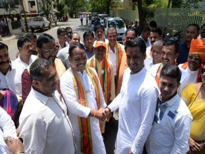 मावळ लोकसभा निवडणुकीचे अर्ज भरण्यासाठी शिवसेनेचे श्रीरंग बारणे व राष्ट्रवादीचे पार्थ पवार समोरासमोर आले असता एकमेकांना शभेच्छा दिल्या..