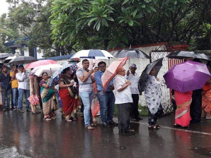 वडगाव मावळ : वडगाव कातवीच्या पहिल्या नगरपंचायतीचे अाज मतदान हाेत अाहे. या भागात मुसळधार पाऊस पडत असताना मतदार नागरिक माेठ्याप्रमाणावर मतदान करण्यासाठी बाहेर पडले अाहेत. सर्वच मतदान केंद्रावर नागरिकांच्या रांगा लागल्याचे चित्र अाहे. सकाळी साडेसातला मतदानाला सुरुवात झाली. दुपारी दीड पर्यंत 53.12 टक्के मतदान झाले.