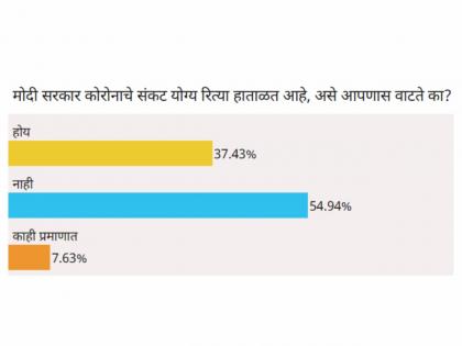 मात्र कोरोनाकाळात मोदी सरकारने हे कोरोनाचे संकट योग्य रीतीने हाताळले का, या प्रश्नावर मात्र मतदारांना मोठ्या प्रमाणावर नकारात्मक कौल दिला. मोदी सरकारला कोरोनाचे संकट योग्य रीतीने हाताळता आले नाही, असे मत तब्बल ५४. ९४ टक्के लोकांनी नोंदवले. तर केवळ ३७.४३ टक्के लोकांना मोदी सरकारने कोरोनाचे संकट योग्यरीतीने हाताळल्याचा कौल दिला. तर ७.६३ टक्के लोकांनी मोदी सरकारने हे संकट काही प्रमाणात चांगले हाताळल्याचे म्हटले.