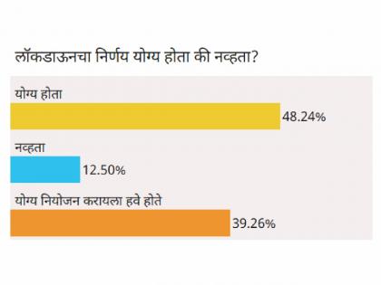 या ऑनलाईन पोलमध्ये मोदी सरकारने कोरोनाला रोखण्यासाठी लॉकडाऊन लावण्याचा घेतलेला निर्णय योग्य होता की, नव्हता, या प्रश्नावर उत्तर देताना ४८.२४ टक्के मतदारांनी लॉकडाऊनचा निर्णय योग्य होता असे म्हटले आहे. तर ३९.२६ टक्के मतदारांनी लॉकडाऊनचे योग्य नियोजन करायला हवे होते, असे मत मांडले. तर केवळ १२.५० टक्के मतदारांनी लॉकडाऊनचा निर्णय हा चुकीचा होता असे म्हटले आहे. त्यामुळे मोदी सरकारने गतवर्षी केलेल्या लॉकडाऊनवर जनता फार नाराज नसल्याचा निष्कर्ष निघाला.