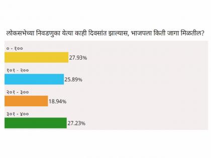 सध्या लोकसभेत भाजपाचे स्वत:च्या बळावर ३०३ खासदार निवडून आले आहेत. बहुमतासाठी भाजपाला इतर कोणत्याही पक्षाची गरज भासणार नाही. त्यामुळे अकाली दल आणि शिवसेना हे पक्ष एनडीए(NDA)तून बाहेर पडल्यानंतरही मोदी सरकारला कोणताही धोका नाही. परंतु येत्या काही दिवसांत लोकसभा निवडणुका झाल्यास भाजपाला किती जागा मिळतील? असा प्रश्न वाचकांना केला होता. त्यावर अत्यंत चुरस पाहायला मिळाली. जवळपास २७.९५ टक्के लोकांनी ०-१०० यामध्ये जागा मिळतील असा दावा केला तर २७.१९ टक्के लोकांनी ३०१-४०० पर्यंत जागा मिळतील असा विश्वास व्यक्त केला. तर २५.९१ टक्के लोकांनी भाजपाला १०१-२०० या दरम्यान जागा मिळतील असं म्हटलं आहे. त्याचसोबत १८.९५ टक्के लोकांनी २०१-३०० यामध्ये भाजपाला जागा मिळतील असं सांगितले आहे.