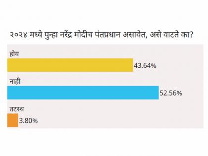 सर्वात महत्त्वाचा प्रश्न म्हणजे २०२४ मध्ये पुन्हा एकदा नरेंद्र मोदीच पंतप्रधान असावेत, असं वाटतं का? असा प्रश्न वाचकांना केला होता. त्यावर ५२.५९ टक्के लोकांनी नकार दिला आहे आणि ४३.६१ टक्के लोकांना नरेंद्र मोदीच पुन्हा पंतप्रधान व्हावेत असं वाटत आहे तर ३.८१ टक्के लोकांनी तटस्थ भूमिका घेतली आहे. त्यामुळे २०२४ च्या निवडणुकीनंतर नरेंद्र मोदीच पंतप्रधान बनणार का? हे येणारा काळच सांगू शकेल.