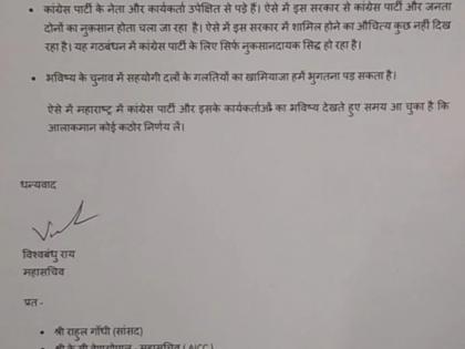 येत्या काळात होणाऱ्या निवडणुकांमध्ये काँग्रेसचा मित्रपक्षांच्या चुकांचा फटका बसू शकतो. अशा परिस्थितीत महाराष्ट्रामध्ये काँग्रेस आणि त्याच्या कार्यकर्त्यांचे भविष्य पाहून पक्षश्रेष्ठींनी कठोर निर्णय घेण्याची वेळ आली आहे, असे विश्वबंधू राय यांनी आपल्या पत्रात म्हटले आहे.