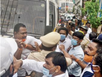 नियम मोडून मोर्चा काढल्याप्रकरणी भारतीय जनता पक्षाच्या युवा मोर्चाच्या ३० कार्यकर्त्यांवर गुन्हा दाखल करण्यात आला आहे, तर सात शिवसैनिकांविरोधात मारहाण, विनयभंगप्रकरणी गुन्हा दाखल केला आहे. यात माजी महापौर श्रद्धा जाधव यांच्यासह राजू पाटणकर, संजय देवळेकर, अक्षय तामोरे, चंदू जगडे, राकेश देशमुख, शशी पुडने यांचा समावेश आहे.