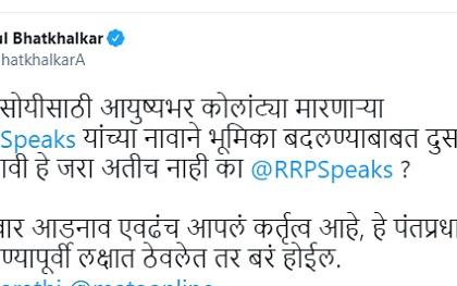 "राजकीय सोयीसाठी आयुष्यभर कोलांट्या मारणाऱ्या शरद पवार यांच्या नावाने भूमिका बदलण्याबाबत दुसऱ्यावर टीका करावी, हे जरा अतीच नाही का रोहित पवार? केवळ पवार आडनाव एवढंच आपलं कर्तृत्व आहे, हे पंतप्रधानांवर टीका करण्यापूर्वी लक्षात ठेवलेत तर बरं होईल", असे ट्विट करत अतुल भातखळकर यांनी रोहित पवार यांच्यावर टीका केली आहे.