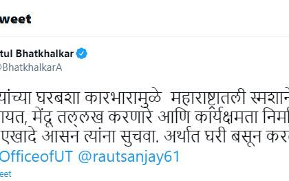 मुख्यमंत्र्यांच्या घरबशा कारभारामुळे महाराष्ट्रातली स्मशाने अखंड धगधगतायत, मेंदू तल्लख करणारे आणि कार्यक्षमता निर्माण करणारे एखादे आसन त्यांना सुचवा. अर्थात घरी बसून करता येईल असे, अशी टीका भातखळकर यांनी केली आहे.