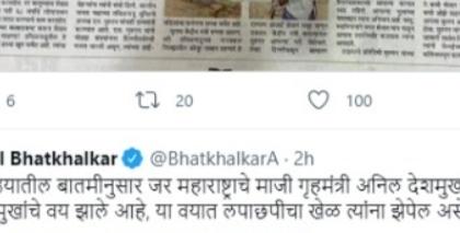 अतुल भातखळकर यांनी या संदर्भात एक ट्विट केले आहे. त्यात ते म्हणाले की, प्रसारमाध्यमांमध्ये येत असलेल्या बातम्यांनुसार महाराष्ट्राचे माजी गृहमंत्री अनिल देशमुख हे गायब झाले आहेत. अनिल देशमुख यांचे आता वय झाले आहे. या वयात त्यांना लपाछपीचा खेळ झेपेल, असे वाटत नाही, असा टोला अतुल भातखळकर यांनी लगावला.