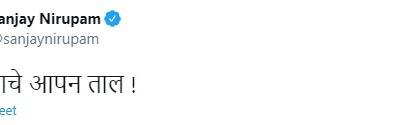 बहिरा नाचे आपन ताल, असं म्हणत संजय निरुपम यांनी राज ठाकरेंना टोला लगावला. राज ठाकरे यांनी परप्रांतीयांना कोरोनाबाबत जबाबदार धरल्याचं वृत्त संजय निरुपण यांनी शेअर केलं आहे. निरुपम यांनी आपल्या ट्विटर खात्यावरून राज ठाकरे यांना टोला लगावला आहे.