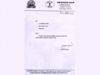 अलीकडच्या काळात डावललं जात असल्याने एकनाथ खडसेंना भाजपाला सोडचिठ्ठी घेण्याचा निर्णय घेतला, गेली ४० वर्ष भाजपाच्या वाटचालीत एकनाथ खडसेंचं महत्त्वाचं योगदान आहे. देवेंद्र फडणवीस यांच्या कारभारावर एकनाथ खडसेंनी उघडपणे भाष्य करत नाराजी व्यक्त केली. मात्र भाजपाच्या सदस्यत्वाचा राजीनामा देताना एकनाथ खडसेंनी अवघ्या २ ओळी लिहिल्या आहेत, त्यात म्हटलंय की, मी एकनाथ गणपत खडसे, माझ्या वैयक्तिक कारणास्तव भारतीय जनता पार्टीच्या प्राथमिक सदस्यत्वाचा राजीनामा देत आहे. हे पत्र प्रदेशाध्यक्ष चंद्रकांत पाटील यांना पाठवण्यात आलं आहे.