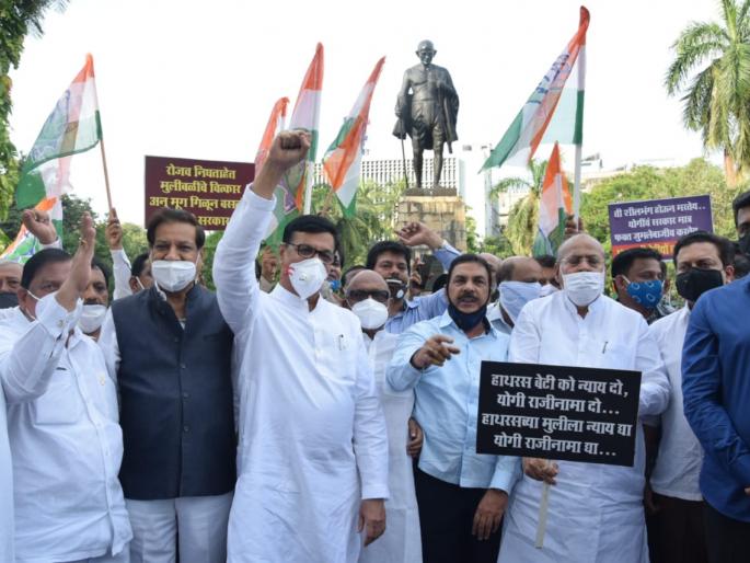 यावेळी उत्तर प्रदेशातील भाजप सरकार विरोधात जोरदार घोषणाबाजी करण्यात आली. या संदर्भात बोलताना थोरात म्हणाले की, उत्तर प्रदेशात कायद्याचे नाही तर जंगलराज आहे हे आज पुन्हा एकदा सिद्ध झाले आहे. उत्तर प्रदेशात महिला व मुलींच्या अब्रूचे लचके तोडले जात आहेत. हाथरस येथील अमानवीय घटनेतील आरोपींनी पाठीशी घालण्याचा प्रयत्न उत्तर प्रदेश सरकार करत आहे त्यामुळेच राहुल गांधी गांधी आणि प्रियंका गांधी यांना हाथरस येथे जाऊ दिले जात नाही. काँग्रेस पक्ष पीडित कुटुंबियांच्या पाठीशी खंबीरपणे उभा आहे. आम्ही देशभरातील काँग्रेस कार्यकर्ते राहुल गांधी आणि प्रियंका गांधी यांच्यासोबत खंबीरपणे उभे आहोत. भाजपा सरकारच्या दडपशाहीला आम्ही भीक घालत नाही. पीडित कुटुंबियाला न्याय मिळेपर्यंत काँग्रेस पक्ष सरकार विरोधात संघर्ष करत राहील असं त्यांनी सांगितले.