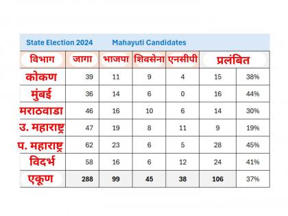 त्यानंतर भाजप, शिवसेना आणि राष्ट्रवादी काँग्रेसकडून पहिली यादी जाहीर करण्यात आली. भाजपाने पहिल्या यादीत ९९ उमेदवारांची घोषणा केली. एकनाथ शिंदे यांच्या शिवसेनेने ४५, तर अजित पवार यांच्या राष्ट्रवादी काँग्रेसने ३८ उमेदवारांची घोषणा केली.