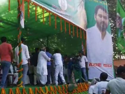 स्वागत संपल्यानंतर मंचावर सूत्रसंचालन कोण करणार यावरून वाद सुरु झाला. या वादातून राजदचे नेते एकमेकांना भिडले. यानंतर तेजस्वी यादव यांच्यासमोरच हाणामारी सुरु झाली. या झटापटीत काही नेते मंचावरून खाली पडले. तर काही जण तेथून पसार झाले.