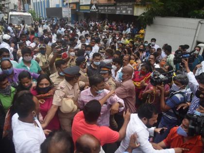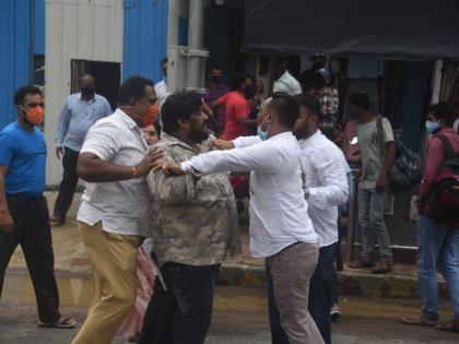 Clashes Between Shivsena and BJP over Ram Mandir Land Scam Issue:राम मंदिरावरून सुरू असलेल्या आरोप-प्रत्यारोपावरून शिवसेना भवनासमोर दोन्ही पक्षाच्या कार्यकर्त्यांमध्ये राडा झाला.