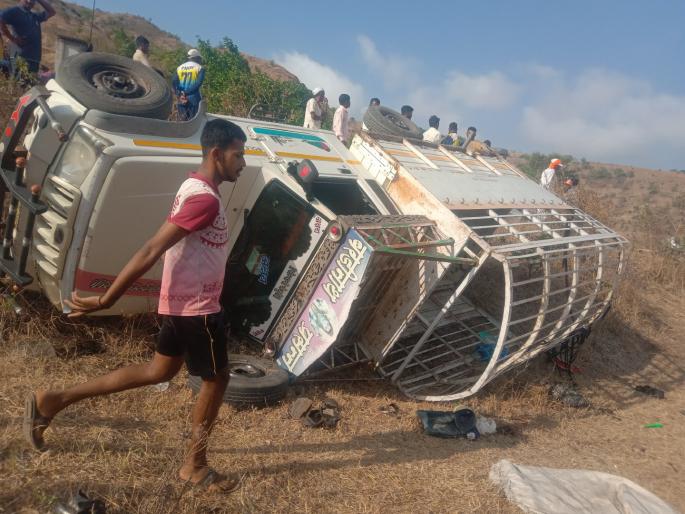 आळेफाटा : जुन्नर तालुक्याचे पश्चिम भागातील मांडवे येथून शेतमजुरांना बनकर फाटा येथे घेऊन निघालेली पिकअप गाडी तेथील पुलाजवळ पलटी होऊन झालेल्या अपघातात एकूण 17 जण जखमी झाले आहेत. ही घटना मंगळवार (दि 6) सकाळी साडेसात वाजण्याच्या सुमारास घडली. याबाबत मिळालेली माहिती अशी की, मांडवे येथून बनकरफाटा, ओतूर येथे शेतमजूर मोठ्या संख्येने शेतीच्या कामाच्या शोधार्थ दररोज येत असतात. आज सकाळी मांडवे तेथून या शेतमजुरांना घेऊन निघालेली पिकअप ही तेथून काही अंतरावरच असलेल्या पुलाजवळ सुमारे सात फूट खड्ड्यात पलटी झाली. अपघातात पिकअप गाडी मधून येणारे शेतमजूर आशा रामदास दाभाडे (वय 38) सुधीर बाळू दाभाडे (वय 16) मनीषा किशोर दाभाडे (वय 22) कल्पना मोतीराम उंबरे (वय 30) योगिता साहेबराव दाभाडे (वय 33) झुंबर रोहिदास दाभाडे (वय 35) चंद्रभागा मंगेश बुळे (वय 35) साहिल भीमा दाभाडे (वय 16) करण बुधा दाभाडे (वय 16) सुंदराबाई मारुती दाभाडे (वय 65) आदित्य बाळू दिघे (वय 17) अरुणा बुधा दाभाडे (वय 35) नंदा भिमा दाभाडे (वय 37) सविता अरुण सोनवणे (वय 32) रंजना बाळू दाभाडे (वय 38) निकिता भीमा दाभाडे (वय 19) हे जखमी झाले. दरम्यान ही माहिती मिळतात तेथील युवकांसह ग्रामस्थांनी या सर्व जखमींना रुग्णवाहिकेतून आळेफाटा येथील दवाखान्यात उपचारासाठी आणले आहे. यातील दोघे दोन ते तीन जणांना अधिकचा मार लागला असल्याचे उपचार करणाऱ्या डॉक्टरांनी सांगितले.