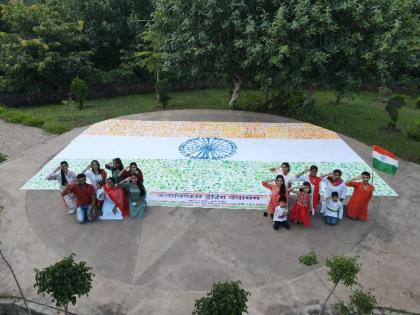 दृष्टिहीन विद्यार्थ्यांच्या हातांनी घडवला ३० फुटी 'तिरंगा'; साकारली अनोखी कलाकृती