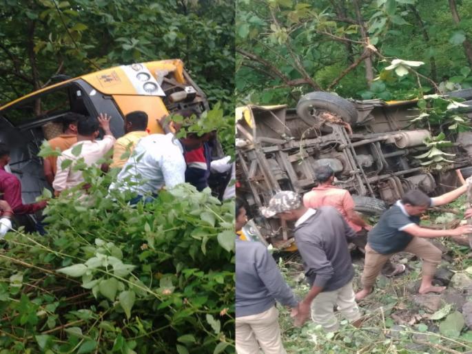 घोडेगाव : पिंपळगाव घोडे ता. आंबेगाव येथील मुक्ताई प्रशालेतील शाळकरी मुलांची बस दरीत जाऊन 44 मुले जखमी झाली. तर पाच शिक्षक व कर्मचारी जखमी झाले आहेत. सर्व शाळकरी मुले गिरवली आयुका केंद्राची दुर्बीण पाहण्यासाठी गेले होते. ही दुर्बीण उंच डोंगरावर असून येथे जाण्यासाठी संपूर्ण घाट रस्ता आहे. या शाळेची सहल सकाळीच दुर्बीण पाहण्यासाठी गेली होती. तेथून परतत असताना घाटामध्ये अवघड वळणावर ओल्या रस्त्यावर गाडी घसरली. बस शंभर फूट दरीत गेली व पलटी झाली जागेवर पलटी झाली.
