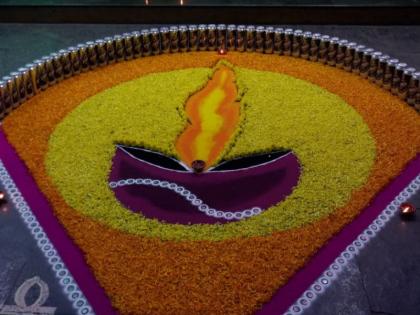 दिवाळीत घराेघरी तसेच दुकानांच्यासमाेर रांगाेळी काढली जाते. प्रत्येकजण अापअापल्या परीने रांगाेळीत रंग भरत असतात. पुण्यातल्या लाॅ काॅलेज रस्त्यावरील एका मद्य विक्रेत्याने थेट रांगाेळी भाेवती बियरचे कॅन ठेवत रांगाेळीत चांगलेच रंग भरले. पणतीच्या अाकाराची रांगाेळी काढत या विक्रेत्याने त्या बाजूने बियरचे कॅन ठेवले हाेते. तसेच शुभ दिपावली लिहीत मद्य खरेदी करण्यासाठी येणाऱ्या नागरिकांना दिवाळीच्या शुभेच्छा दिल्या. या दुकानासमाेरुन जाणारे नागरिक या रांगाेळीकडे कुतूहलाने पाहत हाेते. अनेकांनी या रांगाेळीचे फाेटाेही अापल्या माेबाईलमध्ये घेतले. मद्य विक्रेत्याची ही भन्नाट कल्पना नागरिकांना चांगलीच भावली.