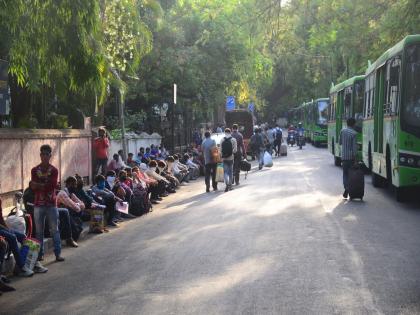पुण्यात अडकलेल्या परप्रांतीय मजूरांना टप्याटप्याने त्यांच्या गावी साेडण्यात येत आहे.